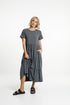 Made in stretchy Cotton/ Elastane this dress is nothing but comfort. Fit with a crew neckline, tee shirt sleeves, pockets and a midi length full tiered hem skirt - this dress is super flattering on all shapes.