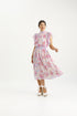 Made from a lightweight floating Polyester/Chiffon this dress features an elasticated neckline and waist gather. This dress has no stretch in the fabric, but is an easy, pull over the head, style and is fully lined. Made in our custom designed Sky Daisies print, which is designed by us, and printed onto our fabric, before making it into this beautiful dress.