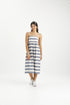 This midi length dress is fit with adjustable straps, shirring on the back for extra comfort, pockets and is made in a comfortable Cotton/ Linen fabric.