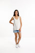 With a scooped neckline front and back, straight cut hem and made in a soft cotton knit - the Heather Singlet is a great wardrobe staple to wear on it's own or as a layer underneath a sheer top or jumper.