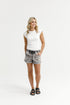 Featuring an elasticated waist with black drawstring, pockets and 'cut off' style hem. This short is designed to be worn low on the hips and slightly looser on the leg.