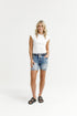 Featuring an elasticated waist with white drawstring, pockets and straight cut hem on the leg. These mid thigh shorts are long and more fitted than our Lagoon Short.